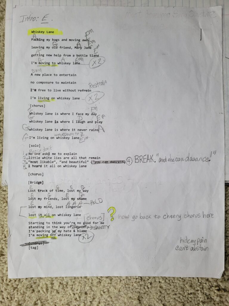 Make the song about this, which changes the flavor of the song so it’s no longer about singing in a band. It’s still TELLING instead of showing, but I like it for what it is. Now what are the verses going to be about?